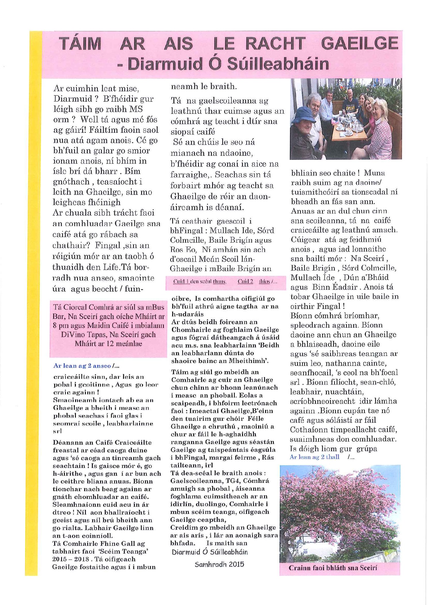 Taim ar ais le racht Gaeilge le Diadmuid Ó Súilleabháin
